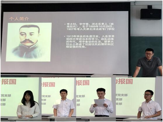 学党史,讲精神谱系故事。教工党支部的王贺春老师讲述李大钊同志的过往生平,李大钊同志是共产党人学习的楷模和榜样,以满腔的爱国热情,开拓前进。随后,员工党支部四名党员也讲述了红岩精神、长征精神、改革开放精神、抗震救灾精神等谱系故事。