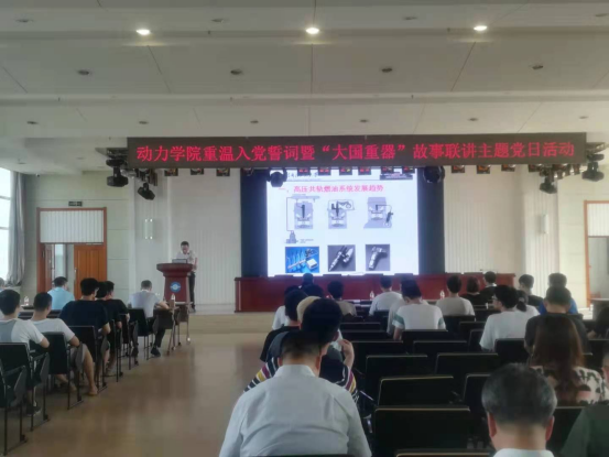 宣誓结束后,电控所党支部书记范立云,振动所党支部书记率志君和公司党委委员、副经理王忠义先后讲述《使命与担当--高压共轨燃油系统关键技术“自主化”进程》《传承与创新--振动噪声控制技术“国家队”的成长之路》《破题与破局--为舰船提供洁净燃烧空气》等“动力人”在党领导下打造大国重器的故事,帮助师生党员更好了解公司历史、了解专业特色、了解行业方向,进一步坚定“为船为海为国防”的信念,进一步强化为国打造大国重器的责任担当。