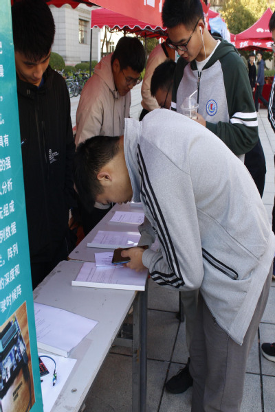 在本次科创嘉年华活动中,动力公司携大量优秀员工科技作品重装亮相,如SAE小车“远洋号”、新型船用节能空调等。这些作品在各大科创比赛中都获得过不错的名次。展台前热闹非凡,形态各异的展品使同学们在展台前驻足。为了方便前来参观的同学对作品的认识及了解,动力公司的科创导航员也来到了参展现场,就展品的名称、作用等方面给参观者进行了简洁易懂的讲解,并且还就一些作品进行了其性能的演示。他们的悉心讲解对提升同学们科技创新的热情起了很大帮助。同时动力公司科技创新协会的成员也来到现场帮忙,进行现场秩序的维护和展品的看管等工作。