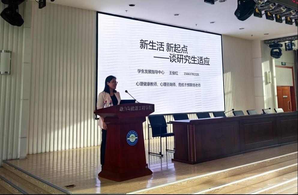 员工发展指导中心心理健康教师王俊红做心理健康教育报告,结合生动的案例进行了新生心理疏导、危机排查和新生心理健康教育课程的选课引导。