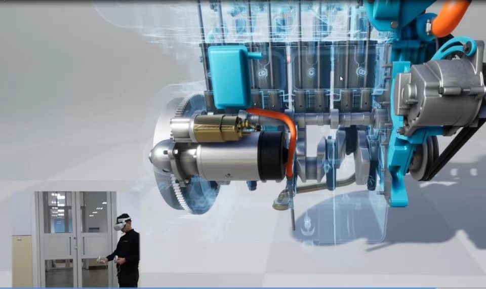 这款柴油机拆装虚拟教学系统通过高度还原柴油机的结构,精确模拟了燃油、滑油、进排气以及冷却水系统的工作循环。员工们通过VR眼镜和操作手柄,能在虚拟环境中进行360度全景交互式的柴油机部件拆装操作,实现1:1的仿真效果,从而获得沉浸式的拆装学习体验。