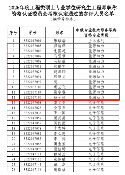 截至目前,黑龙江工程师公司已毕业第一批研究生, 经公司审核、申报材料公示、公司评议组评议、黑龙江工程师公司工程类硕士专业学位研究生工程师职称资格认证委员会考核认定,动力公司11名学子通过最终考核认定。