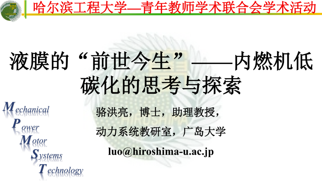日本广岛大学骆洪亮助理教授作了“液膜的“前世今生”——内燃机低碳化的思考与探索”学术报告。骆洪亮助理教授从液膜研究进展、液膜研究方法、液膜形成及演化特性等方面进行报告。骆教授总结认为:在“绿色船舶革命技术”窗口期,应围绕“低碳/零碳燃料动力系统”开展液膜控制的减碳研究工作,重点针对生物质燃料以及绿色合成燃料(e-fuel)和液氨船用发动机。