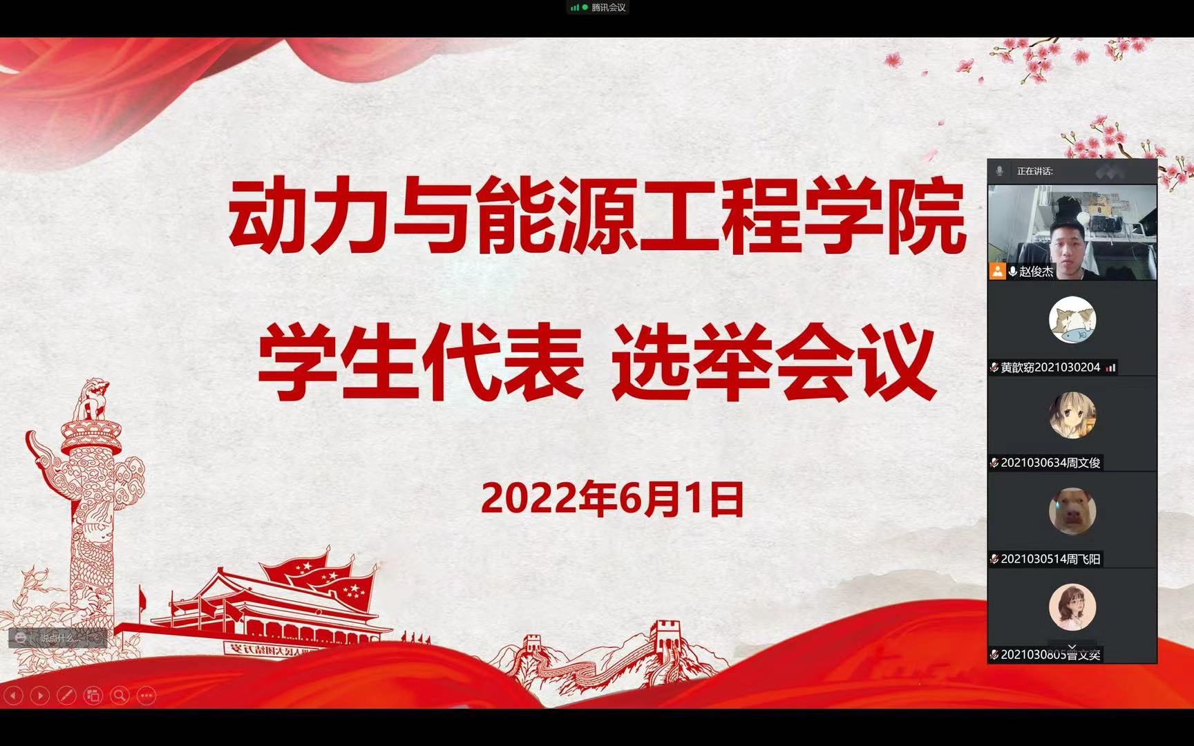 6月1日13时,动力公司于腾讯会议召开xcsports员工代表提名人选选举大会。会议由动力公司2020级本科生赵俊杰主持,xcsports本科生参会。