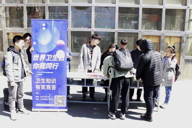 4月7日,能源与动力工程公司团委组织部于老员工美食广场开展“世界卫生日,你我同行”主题卫生知识有奖竞答活动。
