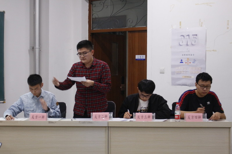 主持人曹屹锋向到场人员介绍本次比赛的主题,目的及重要性。双方辩手以买买买是当代青年的解药还是毒瘤为辩题,依照比赛规则展开激烈辩论。随后,场下观众对双方辩手就辩论过程中的疑问进行提问,并由辩手进行回答。辩论结束,辅导员鲁建鑫对各位辩手进行点评,指出双方在辩论过程中的优点与不足。活动尾声,还有一起来吐槽活动,由到场同学来分享生活中遇到的消费问题。
