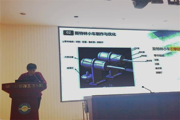此次宣讲由斯特林发动机的历史故事引出,对斯特林发动机的结构进行详细介绍,并从零件组成等方面探讨斯特林小车制作与优化问题,激发同学们创作的新思路。在宣讲过程中,宣讲人用PPT的形式让同学们一览优秀实物成果图,吸引同学们的注意力,取得良好的视听效果。同学们认真听讲,与宣讲人互动交流,气氛积极向上。