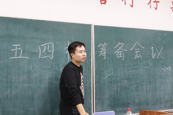 贲浩然向各部门部长布置相关任务,阐述大家的职责与义务,强调“五四杯”的意义和重要性,督促各部门部长各司其职,保障所属部门的工作有序进行,并且预祝“五四杯”活动可以有序开展。