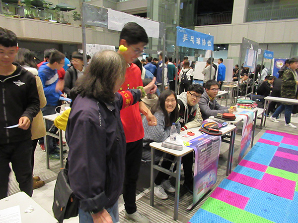 下午4时30分,魔方爱好者协会、微电影协会、畅游联盟以及乒乓球协会来到指定位置开始布置活动场地。下午5时整,社团文化节开幕式晚会正式开始。魔方爱好者协会、微电影协会、畅游联盟和乒乓球协会联合举办了撕名牌、知识问答、文化交流等等一系列体育文化类活动,吸引了广大老师、同学和教职工来参与。
