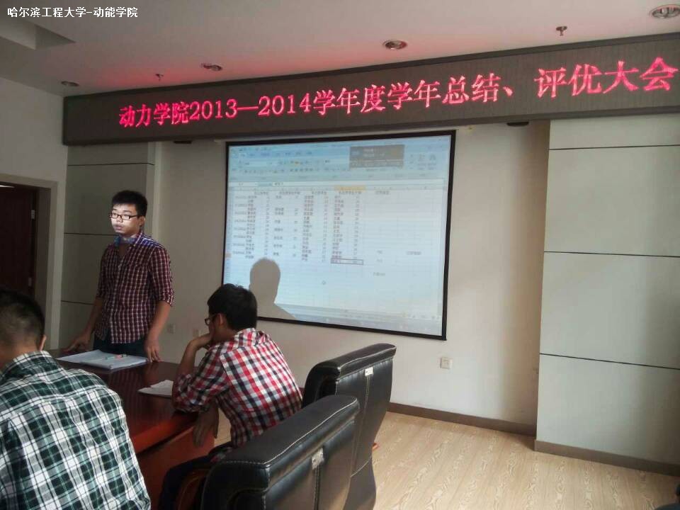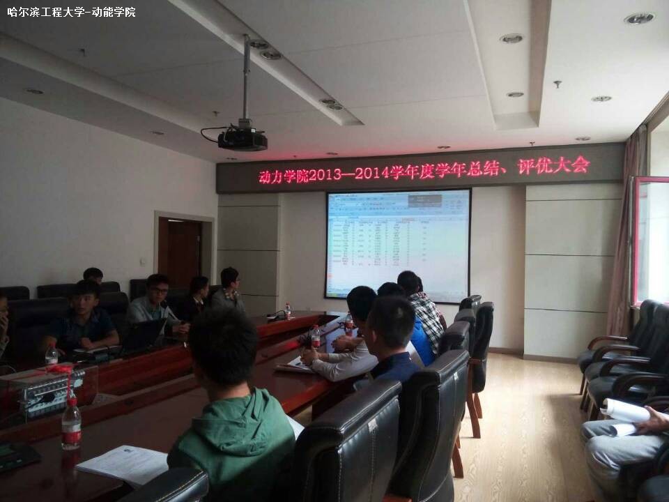 会议开始,首先进行的是优秀班级的评选。候选班级来自12级和13级的三个班级,三个班级班长分别代表班级演讲竞选词。随后进行优秀寝室的评选,此次答辩由高年级同学开始,共有四个寝室参加,各寝室代表就2013-2014年度各自在成绩,科技创新,公益文体活动以及干部经历方面取得的成绩进行总结,并向评委老师展示了所获奖状及证书。紧接着进行的是科创标兵评选。随后依次进行了优秀三好员工标兵评选、自强标兵评选以及优秀员工干部评选。答辩过程中各代表声音高亢,陈词条理清晰,为获这次竞选做了充足的准备。