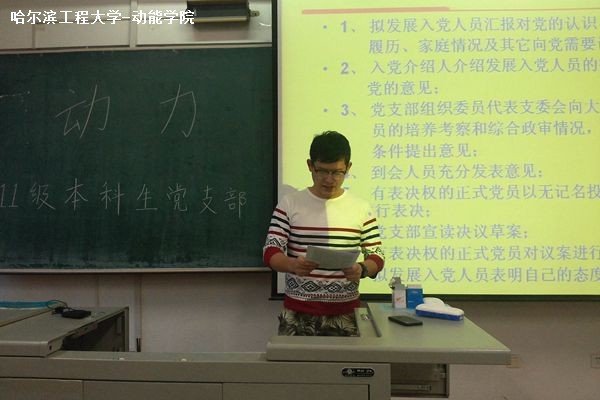 到会人员充分发表意见之后,由有表决权的正式党员以举手表决方式对拟发展人员进行表决,再由动力公司到会的员工党支部代表宣读决议草案。在有表决权的正式党员再次对议案进行表决后,拟发展入党人员表明自己的态度。最终经过大会决议,16名发展对象全部成功转为预备党员。