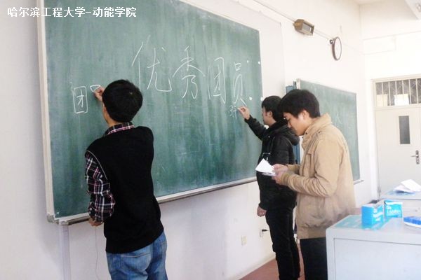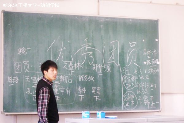 会议开始,崔佳林宣布了班会的主题――推选团支部年度优秀共青团员和优秀共青团干部,并向全体同学宣读了推选条件。经过热烈讨论和审核,班级同学推选出了4名优秀团员和4优秀团干部名预选对象。然后全班进行集体投票,从这8名同学中进一步选拔出2名优秀共青团员和2名优秀共青团干部。投票完毕,由科创委员范朝阳唱票,班长郑华强和团支书崔佳林记录各位预选对象票数。经过激烈角逐,最终王雪松和孔凡夫同学被确定为优秀共青团员,崔佳林和范朝阳同学被确定为优秀团干部。