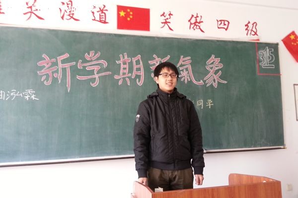 班会开始,首先是班长周帅宇上台发言,简单总结了上学期班级同学的学习、工作以及生活情况,接着提出了新学期的各项要求以及公司制定的各项新规定,最后作为315班全体同学代表向四位新成员表示了热烈欢迎。然后,这四位同学依次上台发言,进行了简单的自我介绍,并表达了自己加入新班级的感受,希望能够在未来的学习工作与生活中与大家相处融洽,互帮互助,共同进步。接着,团支书王雪上台发言,在经过了一番简单的总结回顾之后,带领全班同学投票,本着公平公正公开的原则选出了本学期接受党课培训的入党积极分子。最后,新学期的第一次班会在愉快的氛围中结束了。