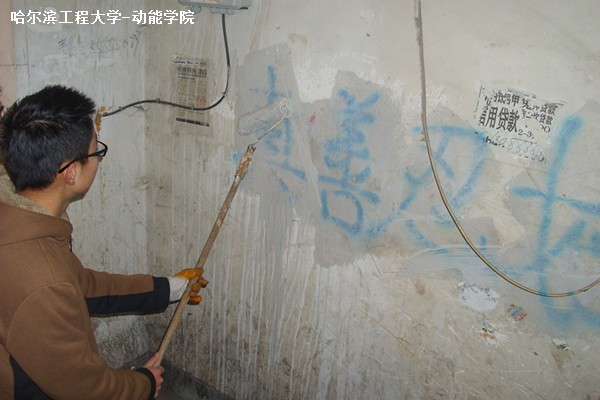 上午8时40分,志愿者和青协负责人共同从公司出发,到达目的地与工作人员交流后,志愿者们领取粉刷工具,分为两队,一队跟随社区负责人,一队跟随青协负责人,进入各个楼栋,开始了清理邪教标语的活动。