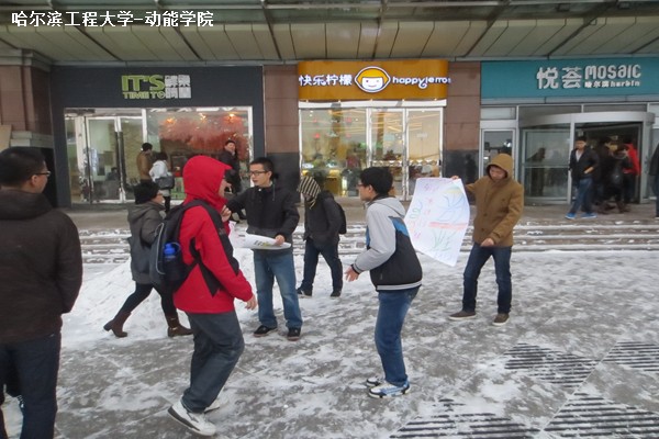 11月16日下午2时30分,20120316班全体同学在团支书麦楷的带领下来到了哈尔滨中央大街,开展以“环保宣传”为主题的团活。本次活动的主要目的在于让同学们深刻了解保护环境的重要性,并通过积极的宣传将这种精神传达给行人,呼吁大家积极参与到保护环境的行动中,从而帮助同学们树立正确的价值观,增强时代的使命感。