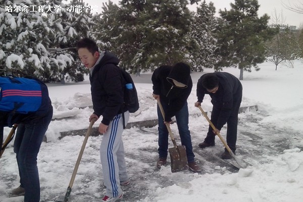 11月19日,哈尔滨经历了连续两天的大雪后,终于迎来了短暂的晴天。这场大雪让道路变得非常难走,造成了一定的安全隐患,为老师和同学们的出行带来了不必要的麻烦,为了保证校园环境的整洁和师生出行的安全,并积极响应公司的号召,下午1时整动力公司全体大一新生在动力楼前有序地开展了扫雪活动。
