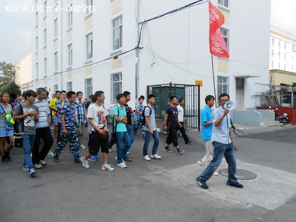 上午10时,在迎新工作人员的引领下,新生及家长在六公寓楼下集合完毕后,准时启程。首先,100余名新生在王松阳的带领下到达了动力实验楼,老师首先对新生的到来表示了欢迎,并对实验楼进行了简单的介绍,之后带领大家参观实验室。首先参观的是柴燃联合动力装置试验台,实验室主管老师讲述了试验台的主要组成及功能与用途。试验台主要由动力设备,负载设备,齿轮箱组,控制系统及相关附属系统等设备组成,随后还参观了减震降噪实验室、蒸压锅炉实验室等。动力实验楼参观完毕后,大家来到了31号楼,在有着浓厚军工文化的31号楼下,王松阳为大家介绍了哈军工悠久的历史文化。