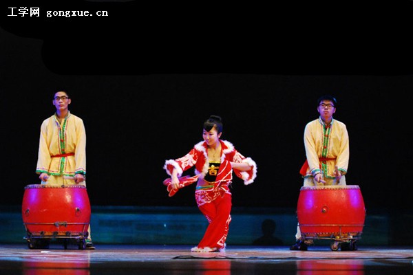 参与该节目的有来自20110315班的魏海波、王生强、张舟,20110341班周忠贺等。随着灯光逐渐点亮,细碎的鼓声响起,雄厚而大气,震撼着现场观众。铿锵有力的击打也昭示着2012年的完结和2013年的哈工程更加充满蓬勃的生机与活力。与以往不同的是,这次的节目在中途增加了以“剪纸姑娘”为主题的舞蹈,达成了“刚柔并济”的效果,增添了节目的观赏性并赋予了它更多的文化内涵。在震撼人心的鼓声过后,晚会的节目有序进行。