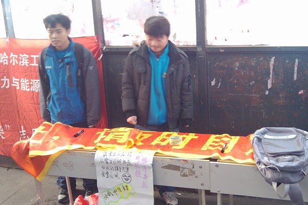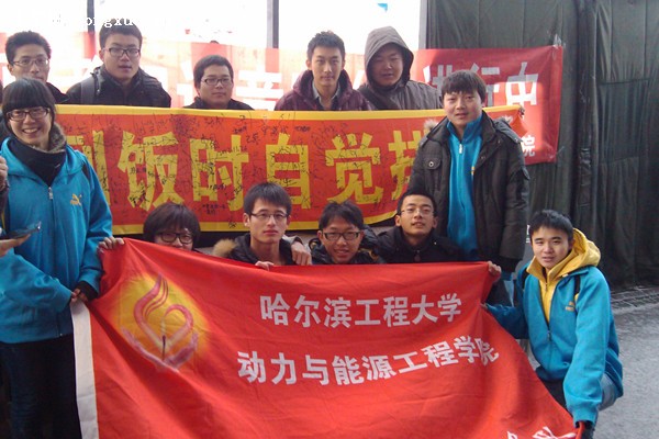 在食堂里就餐时,时常见到这样一个现象:在倾倒餐盘内吃剩食物时,鲜少有人排队,于是经常发现拥挤,撞到他人,以及把汤汁洒到他人身上等不良现象。于是,该班同学决定开展一次倡导员工们文明就餐的公益活动,以帮助同学们建立文明就餐的意识。26日中午,该班同学首先在21b大厅宣传栏张贴宣传海报,然后在大美门口进行了宣传教育活动,给同学们讲解了文明就餐的利处,并请同学们在大条幅上签名,以表示今后文明就餐的决心。在食堂用餐人数较多时,该班同学在到餐口站成两排,引导并教育同学们要排队倒餐、文明就餐。这一举动获得了同学们的一致好评,对维持食堂用餐秩序起到了很好的效果和作用。
