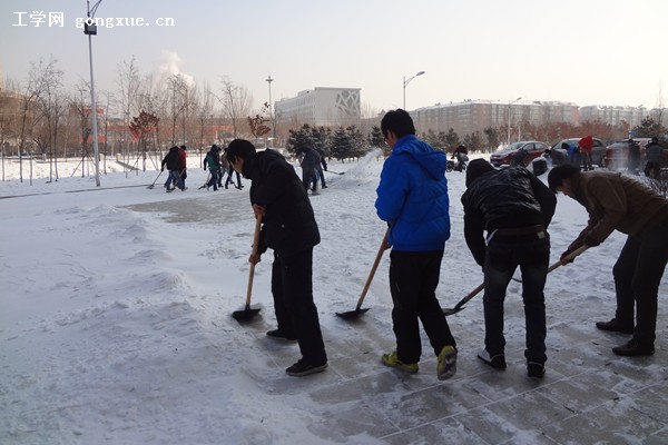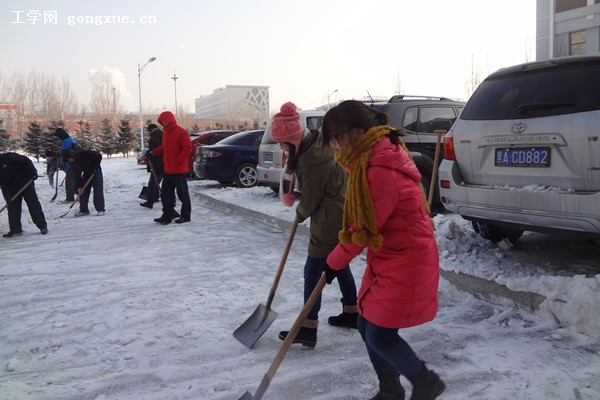 同学们提前来到十公寓,取了铁锹、扫帚等清扫工具,随后带上手套来到动力楼前清除道路上的积雪。团支书组织同学们将场地分区进行打扫,并考虑到劳动工具的不同,大家进行了合理的分工安排,扫雪活动有序地展开。凛冽的寒风和零下十几度的低温、坚硬的积雪都使除雪工作更加艰难。尽管同学们的手和脸都冻得通红,但是这丝毫没有影响同学们的热情和工作效率。在团支书的带领下,各位“小火柴”发扬了无私奉献,吃苦耐劳、顽强拼搏的精神,大家团结协作,坚持将道路上的积雪清扫干净。在积极扫雪的过程中,同学们也增多了交流,收获了喜悦。