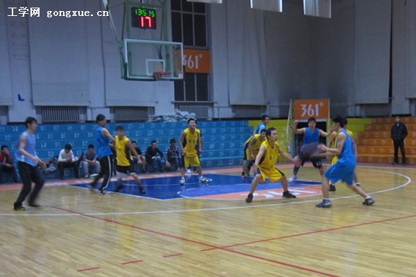 11月17日晚六点,动力公司与经管公司在体育馆竞赛馆进行了争夺第三名的篮球比赛。整场比赛进行得非常激烈。