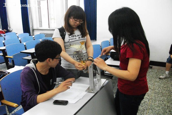 参加检查的作品被分为A、B、C三组,分别由三位评委进行打分。各组同学井井有条地参加检查,仔细地为评委讲解自己作品的工作原理、主要流程、实施进度,并且就作品制作过程中的难题向评委虚心请教。评委也细心地倾听同学的介绍,指出作品存在的一些问题,给出了一些改进的思路,并对他们在制作过程中的难题进行了解答。