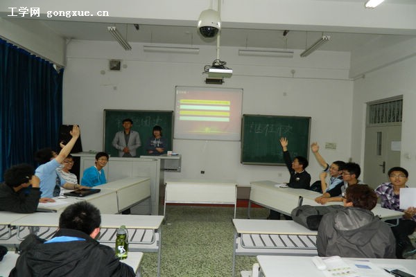 接着开始了时长约一个小时的团史知识竞赛。此次比赛的题型多种多样,内容也是十分丰富,两班分别派了三名代表参加比赛。比赛过程中,双方队员积极的进行答题。经过激烈的角逐,最终11316班以微弱的优势胜出。比赛结束后,裁判为双方队员颁发了奖品,大家鼓掌致意。然后经主持人提议,为调动同学们的积极性,设置场下同学的抢答环节,大家积极的参与,并获得丰富奖品。