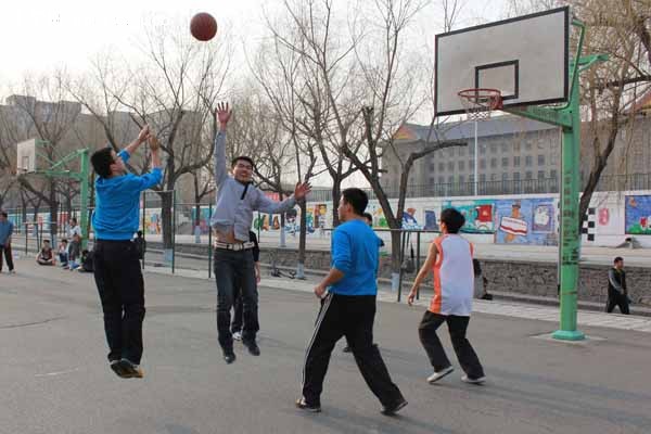 2012年4月18日下午下课后,班级组织委员带领本班同学来到三公寓楼下篮球场。