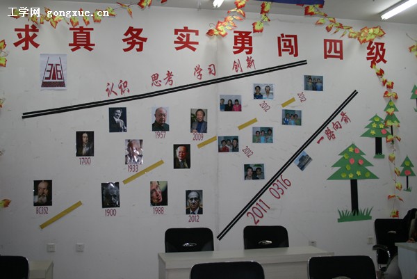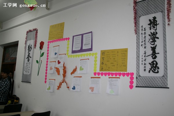 专教文化建设历时近一个月,大一所有班级都参与了此次活动。验收过程中每个班级都配有一名解说员,为大家讲解专教美化的思路。每个班级都有其特色,令人眼前一亮。