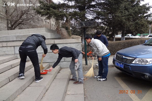 4月1日下午四点,110342班全体同学在班团支部的带领下对31号楼前进行了清扫。