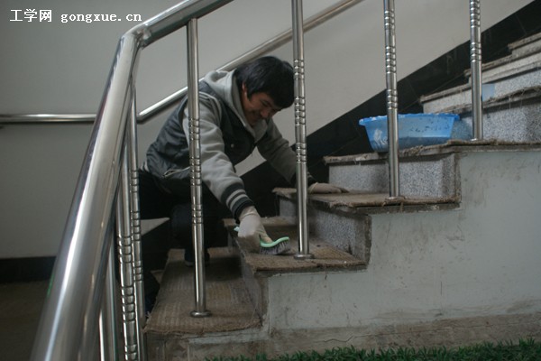 起初,同学们都向敬老院负责人女士作了简单的自我介绍,为本次活动揭开了帷幕。在女士与同学们之间简短的谈话之后,便给他们分工:两名女同学负责擦洗大厅桌椅和楼梯扶手,两名男同学负责大厅地板的清洗,另外两名男同学负责楼梯地毯的刷洗。同学们在工作中有说有笑的,大大提高了工作效率。