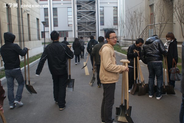 11月13日中午,动力公司召集大一同学来到动力实验楼仓库领取扫雪工具,公司生活资助中心全体人员在主任黄超的带领下协调组织了本次活动。