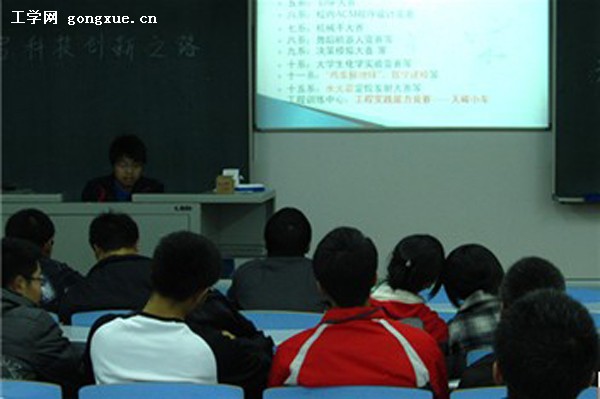 讲座上,李飞对校级,省级,国家级的科创比赛进行了介绍。他还就如何立项,进行科技创新的流程是什么等一系列大一新生比较关心的问题做了详细阐述。他强调,要想做好科技创新必须做到有激情,团队组合努力,理论与实践相结合,处理好学习与科创的关系。