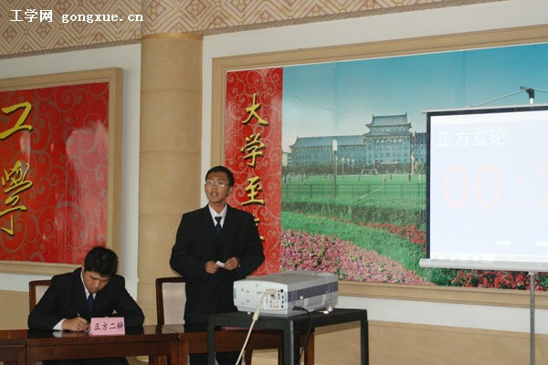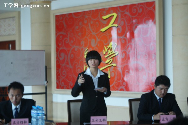 在双方一辩简明、精炼的立论陈词后,比赛进入了攻辩阶段。正反双方以敏捷的思维、流利的语言,应对着对方一个接一个暗藏玄机的问题。正方运用类比的方法,理论与实例相结合,巧妙地论证了教师与员工距离应保持在良性状态。而反方则抓住正方概念模糊这一漏洞,屡设陷阱,认为距离不利于教师了解员工,阻碍了教学进行。自由辩论中,面对反方的连连质疑,正方四位辩手依靠默契的配合以及犀利的语言一次次力挽狂澜,扭转不利局面。