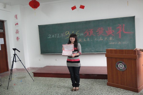 令人兴奋的颁奖典礼开始了,据了解,本次活动还准备了一份神秘大奖,以奖励为班级建设做出贡献最大的人。班主任李晓明老师和吉伟学长为获奖同学颁发奖状和奖品。在众多奖项中,除过院系的奖学金奖励,还有许多是班级内部为奖励先进个人设立的,有些奖项的名称不乏诙谐和幽默,使人听了为之捧腹大笑。这些奖品均是班主任李晓明老师用自己的工资为班级设立以鼓励同学进步的班主任奖学金购买的。同学们个个喜上眉梢,围在一起合影留念,全场气氛热闹活泼。大家都表示同学之间就应团结协作,互相鼓励,共同进步。最激动人心的奖项就要揭幕了,当听到是班主任李晓明老师获得最高荣誉奖时,同学们爆发出雷鸣般的掌声。李老师显然极为惊奇,这个惊喜让她十分兴奋。但对同学们来说,这个结果,却早在意料之中,大家表示李老师为班级做出的贡献,当之无愧的获得这个荣誉,这是大家的意愿。在发表获奖感言的时候,李老师幽默的说:“大家总是给我带来惊喜,我也对同学们充满了希望,不过我想先看看我的神秘礼物。”
