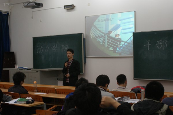 4月28日晚上,动力公司第三次干部培训在21B112举行。组织考核中心主任李金刚同学做了主题为“有效沟通,提高交际技巧”的讲话。从生活中的实际例子出发,李金刚同学分析了有效沟通的重要意义:作为干部的一员,只有掌握了有效沟通的技巧才能更有号召力,这是更好的为班级同学服务的前提。同时针对同学们遇到的困惑,重点讲解了如何提高有效沟通的技巧,最后得出了沟通是一种艺术,掌握沟通的方法将是一笔莫大的财富的结论。同学们听了受益匪浅。此次会议作为干部培训的一部分,将有效地提高干部的工作效率和整体素质。