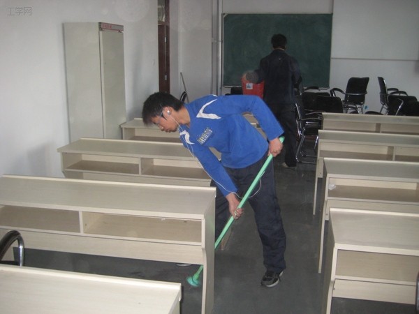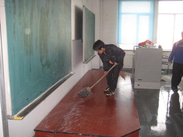 下午两点半,十几名同学按时在动力楼342班专教集合,带着工具,准备开始大扫除。他们兵分两路,一组人来到四楼多媒体教室,另一组人来到三楼多媒体教室,开始打扫。地面上凌乱的纸屑,桌子上厚厚的灰尘,在两个半小时的打扫后都不见了,取而代之的是干净整洁的教室。同学们不仅没有因为占用自己休息时间来动力楼打扫卫生而抱怨,而为公司清洁了教室而高兴和自豪。