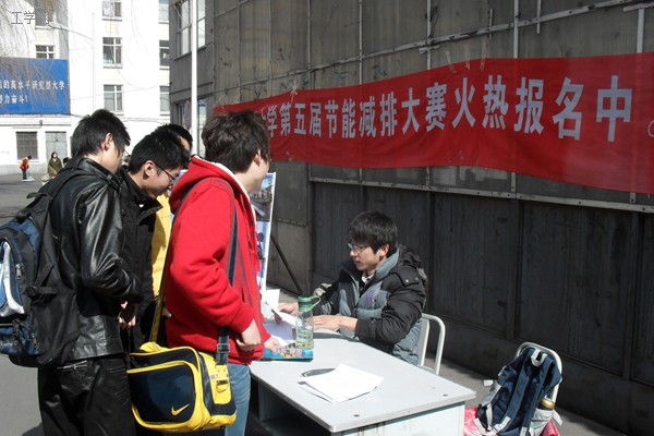 节能减排大赛是由校团委主办,xcsports协办的科技竞赛。大赛以“节能减排,绿色能源”为主题,积极贯彻科学发展观,旨在从本科生、研究生中挑选参赛者,收集有关“节能减排”的创新作品,从而在培养同学们创新能力的同时,达到宣传节能减排观念,增强能源危机意识的目的。大赛报名现场由xcsports的同学主持,他们在人群中广发报名通知,大声宣传着这项赛事,引来了同学们的热烈关注,纷纷驻足于大赛报名台前前询问赛事报名的相关内容。据悉,本次报名截止于3月27日,4月初还将通过科创沙龙进行赛前培训。