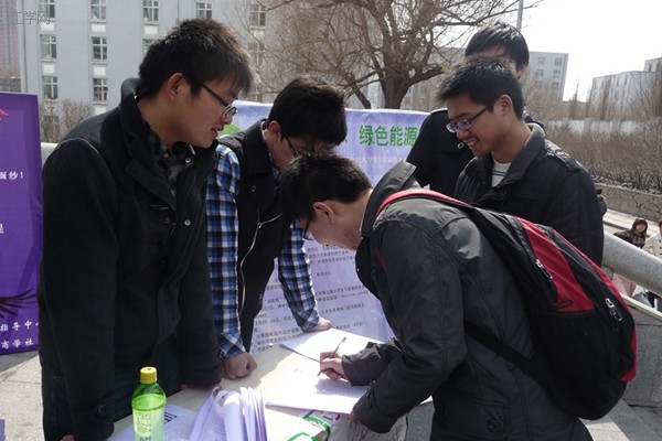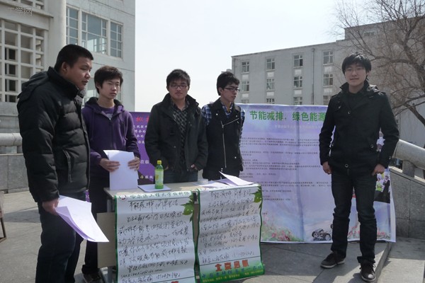 3月25、26日中午,校第五届节能减排大赛报名活动分别在老员工美食广场和美食城门口现场展开。