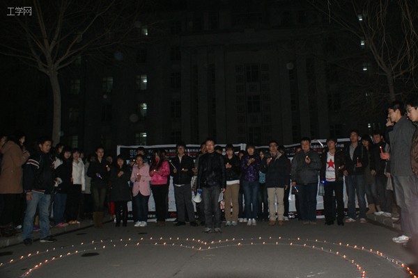 随着8点半倒计时的结束,二公寓各寝室配合,摆出了60的活动标志,与此同时,楼下同学们用点燃的蜡烛围起来一个“心”形,闪烁的烛光中,主持人大声地宣读活动倡议书,号召个人、社区、企业和政府在每年3月最后一个星期六20:30-21:30这一小时中,共同熄灭不必要的灯光,来表明对应对气候变化行动的支持,为地球的可持续未来祈福。宣读完毕后,几十只闪亮的竹蜻蜓一齐放飞,窜向美丽的夜空,现场四周响起了整齐的口号:“关上灯,点亮希望,体验短暂的黑暗,换取永恒的光明!”