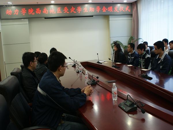 5月7日下午四点,动力公司西南地区受灾员工助学金颁发仪式在动力楼204会议室正式进行,公司党委副书记丛建伟、团委书记吴岚及各年级辅导员出席了本次会议,动能公司李明阳等31名同学获得该项助学金。