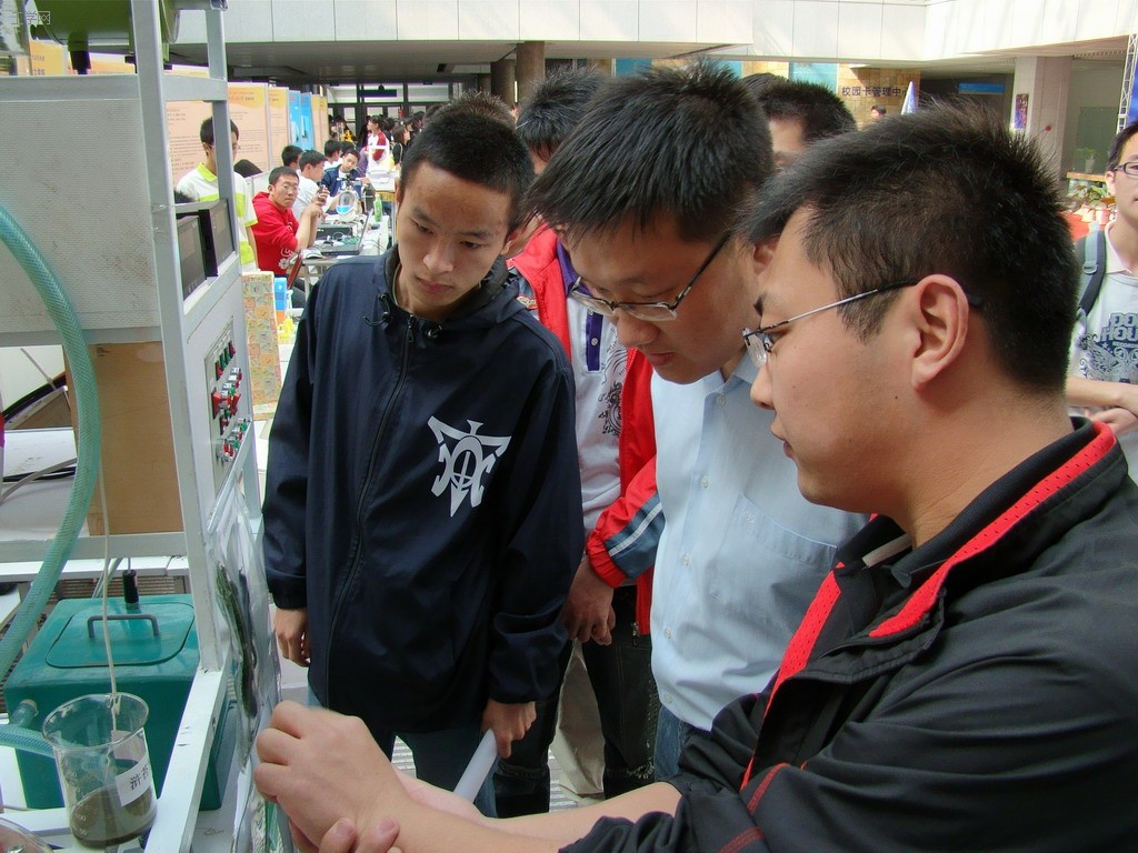 为了进一步了解各支参赛团队在创新道路上的艰辛历程,记者对一些团队进行了采访。在采访“制氢小组”的负责人时记者了解到,他们的创新项目“一体化除苔产氢系统开发”从去年八月份就着手研究了,但由于院系员工所学专业与创新所应用的知识不对口,所以在工作开展中遇到了很大困难。为此,他们利用了大量的课余时间查询资料,并自学了一些相关方面的知识。该负责人还告诉记者,为了提高产氢效率,获得最佳产氢因子,实验组的人员们前后共做了上百次试验,由于实验所用的微生物需要每天都有人照看,所以团队人员就轮流值班,没有周末,也没有假期,相反,节假日总是大家在实验室工作时间最长的时候。但艰苦的实验环境和繁多的工作并没有让大家退缩,每一个成员都尽心竭力的为团队奉献着。