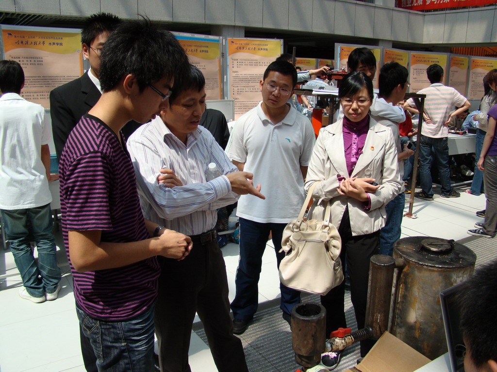 据记者了解动能公司对于此次的“五四杯”的筹备工作在开学初就已经开始,在院系领导的高度重视下,在公司团委书记吴岚老师的细心安排下,专业老师和同学们的支持配合下,各项工作有条不紊,循序渐进。在本学期开学之初,公司团委对同学们的申报情况进行了一次摸底,统计项目数达40余项。在三月中旬经过评审检查筛选,从上交的40多件作品中选出了31件进行参赛,公司经理亲自按作品方向为每一件作品安排了指导老师,这体现了经理对科技创新工作的重视,更是对同学们的关爱。作者与指导教师对接上以后,作品的进展程度更加顺利了。4月初公司副书记亲自召开了“五四杯”动员会,会上表示出公司对此次“五四杯”的高度重视,为同学们增强了参赛信心,同时听取了同学们的作品进程的反馈。在这次会议后,公司团委又组织了一次辅导会,邀请专业老师为作品研制过程中遇到困难的同学们进行答疑解惑。老师们牺牲了周末休息的时间,耐心细致地听取了同学们的问题,并给予技术层面上的指导,同学们从中受到很大启发。整个辅导过程持续了两天。4月中旬,公司副书记和团委书记召开了关于传达公司“五四杯”会议精神的工作例会,会议上公司领导表达了对现阶段的筹备工作的满意。从5月4日到8日公司内部又进行了两次作品的查缺补漏。“五四杯”正式开幕后,公司领导马经理和丛书记又亲自到现场观看作品,了解比赛情况。