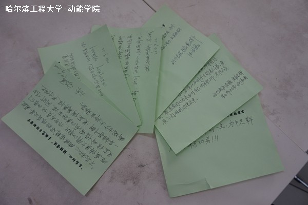 通过观摩纪录片《百年风云人物》之陈赓,教师党员们了解了陈赓大将为党奉献、跌宕起伏的传奇一生,也更加深入了解哈军工的办学历程,感悟和学习哈军工以忠诚奉献为核心的革命精神及以改革创新为核心的时代精神,从而鼓励广大教师党员,要永远保持中国共产党人的奋斗精神,面对未来,面对挑战,不忘初心、永葆初心、继续前进。影片结束后,教师党员们纷纷有感而发,互相交流自己的心得体会,在留言条上写下自己的感悟。