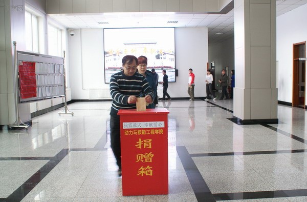 “情系玉树,奉献爱心”捐款活动在全校积极开展。27日上午,动力公司全院师生在动力楼一楼举行了捐款活动,为灾区人民献上一份爱心。在捐款的队伍中,有公司领导干部,有普通教师,有即将毕业的员工。一位教师深情地说:希望能为灾区献出一点微薄的力量,相信在全国人民和玉树人民的努力下,一定会取得抗震救灾的最后胜利。