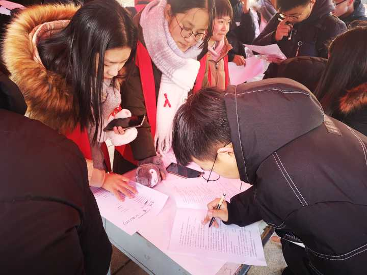 此次活动以纸质答题的形式展开,题目共计25道,均为单选题,其内容涵盖艾滋病基本常识,对待艾滋病的态度,以及预防艾滋病的方法三个方面。同学们在完成答题后,交由志愿者们进行现场批改,并获得主办方提供的纪念品。活动过程中同学们积极配合,参与度较高,活动圆满完成。