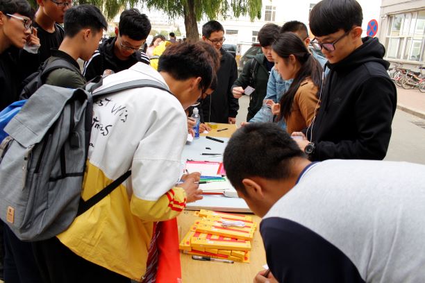 活动正式开始后,在鞠美娜的带领下,来自不同院系的各位同学依次领取小卡片,大家在小卡片上写下对祖国的美好祝福,在祖国母亲69岁生日即将到来之际,表达对祖国母亲日益强盛的殷切希望。随着活动的深入,参与者越来越多,几位职工也借此机会表达了对中国的赞美与祝福。随后,参加活动的同学们获得了由动力公司发放的小礼品。下午1时整,本次活动结束。