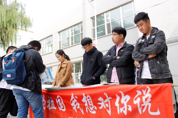 9月28日中午11时30分,动力公司团委于老员工美食广场门口举办以“祖国,我想对你说”为主题的国庆寄语活动。此次活动由动力公司团委副书记鞠美娜主持,团委组织中心全体同学负责现场布置,来自不同院系的各位同学参加本次活动。