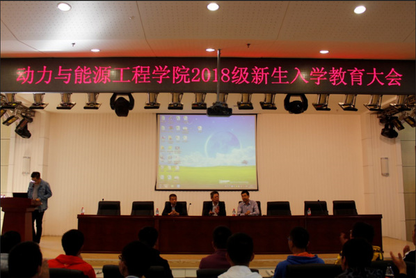 9月22日8时30分,动力公司于动力楼十五楼召开2018级新生入学教育讲座。本次讲座由18级辅导员闫毓麟老师主持,动力公司经理郑洪涛,党委书记、副经理陆勇,党委副书记贾九斌及教务处谭晓京老师担任主讲,18级全体同学参加。