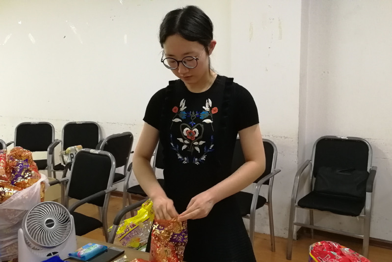 为了迎接营员们的到来,志愿者们为营员们收拾寝室,发放雨伞、香皂、拖鞋、脸盆、挂衣架、纯净水等生活必需品以及特别为营员们准备的衣服、书包、营员手册和营员证,并打扫、布置启航活动中心部分教室,以方便接下来的培训活动。会务组的志愿者们则将备好的小食用红色丝袋封装,这些“福袋”将用于18日的“集体生日”环节,让在科学营期间过生日的营员及志愿者在xcsports度过一个特别、难忘的生日。